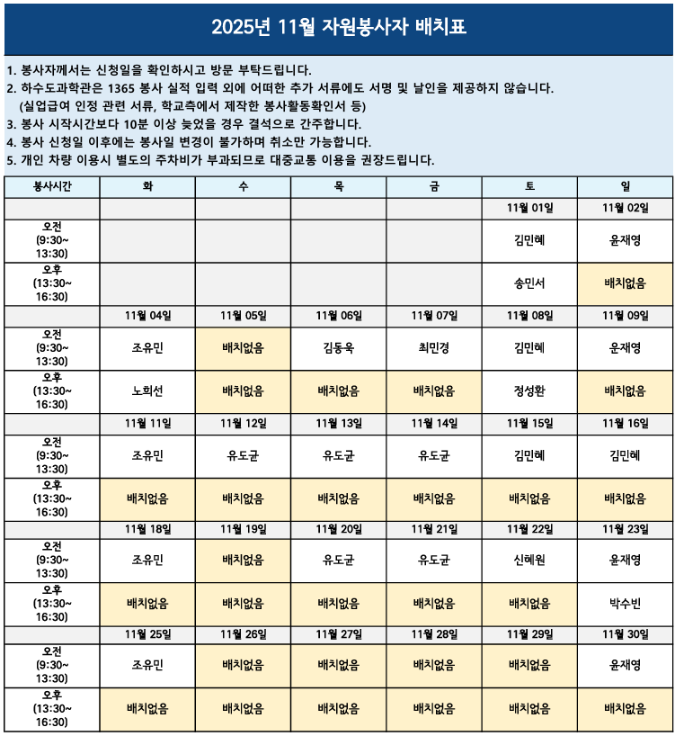 | 첨부 | 11월 자원봉사자 배치표.pdf (260,822 byte) | ||||