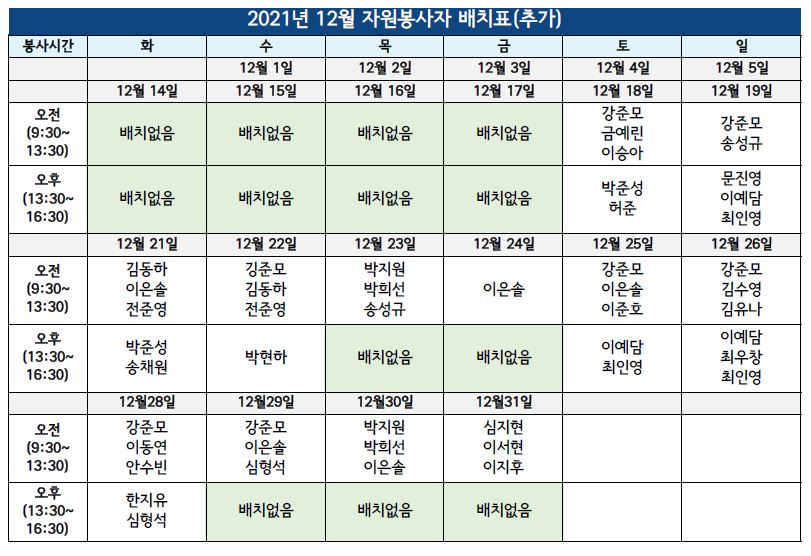 *봉사내용 : 2021년 12월 [평일&주말] 전시실 지킴이 자원봉사
