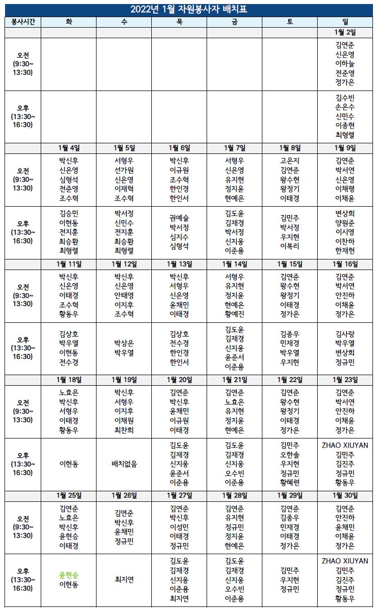| 2022년 1월 1365 자원봉사자 활동 안내 | |||||