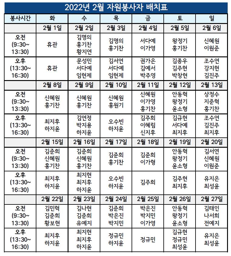 | 2022년 2월 1365 자원봉사자 활동 안내 | |||||
