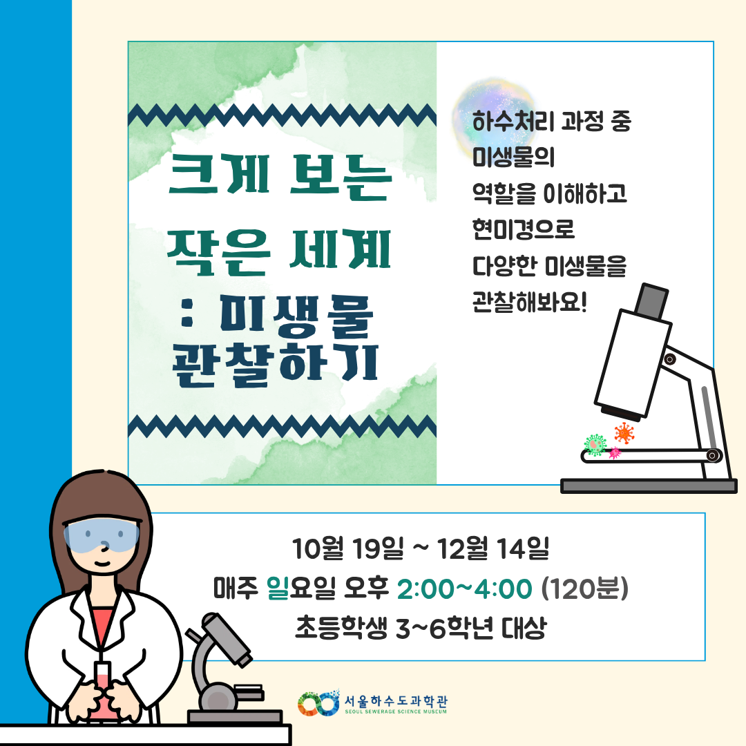 서울하수도과학관에서 10월부터 열리는 주말교육프로그램을 안내드립니다.